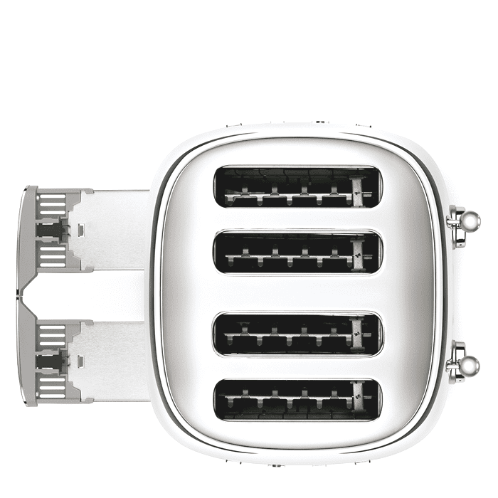 De robuuste behuizing van roestvrij staal zorgt voor duurzaamheid en een premium uitstraling. De uitneembare kruimellade maakt schoonmaken eenvoudig, terwijl de antislipvoetjes de toaster stevig op het aanrecht houden.