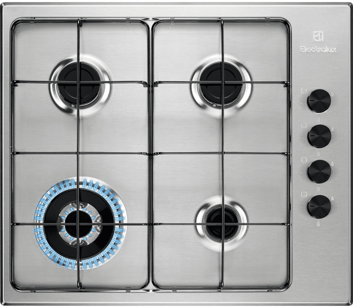 De Electrolux EGS6414X is een inbouw gaskookplaat met een breedte van ongeveer 60 cm. Het roestvrijstalen oppervlak en de geëmailleerde pansteunen geven zowel een tijdloze look als praktische duurzaamheid.