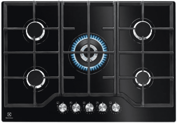 De Electrolux KGG75362K Inbouw Gaskookplaat is een inbouw gaskookplaat uit de Electrolux 600-serie met vijf branders en een breedte van ongeveer 75 cm.