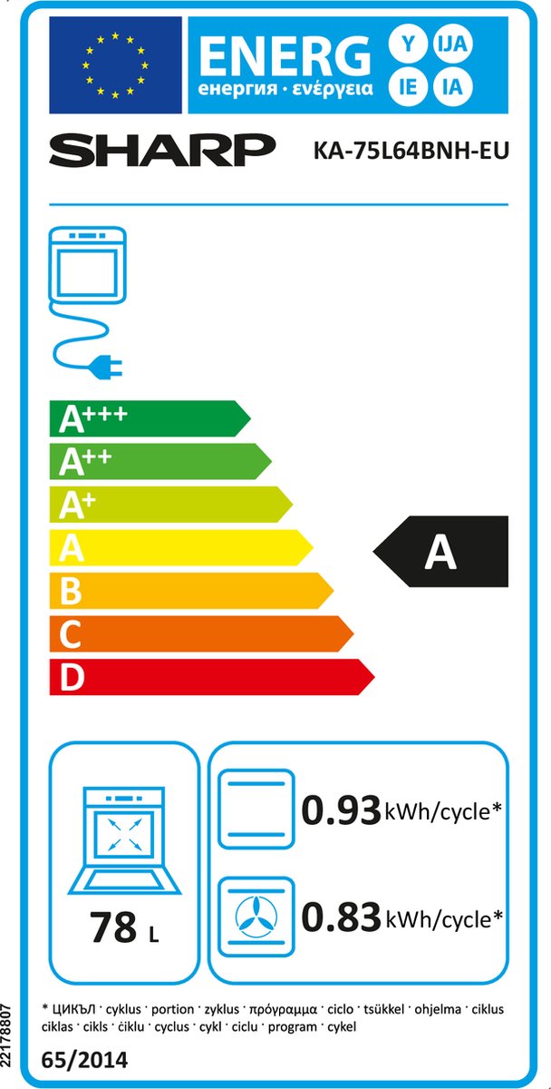 Sharp KA-75L64BNH-EU Inbouw Oven – 73 L – Pure Black