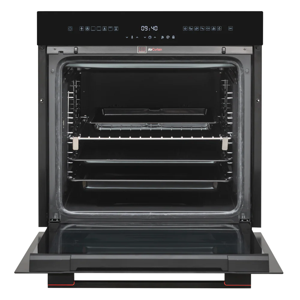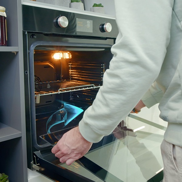 Multifunctionele oven met dubbel ventilatiesysteem voor gelijkmatige warmteverdeling. Dankzij slimme reinigingsfuncties blijft de binnenruimte moeiteloos schoon en kun je meerdere gerechten tegelijk bereiden zonder geurvermenging.