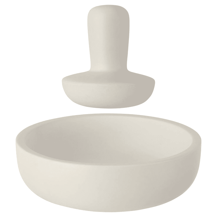 De granieten vijzel is eenvoudig te reinigen met warm water. Dankzij het stevige gewicht blijft hij stabiel op het aanrecht en schuift hij niet weg tijdens gebruik.