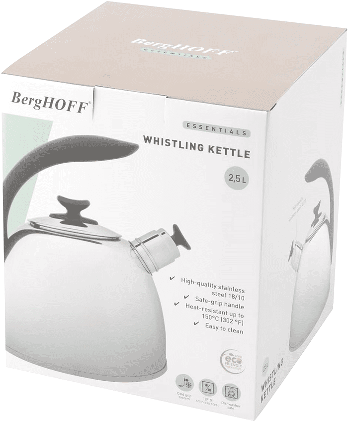 Met een inhoud van 2,5 liter is de ketel groot genoeg voor meerdere kopjes thee of koffie tegelijk, maar compact genoeg om eenvoudig op je fornuis te plaatsen. Perfect voor gezinnen, kantoren of horeca.