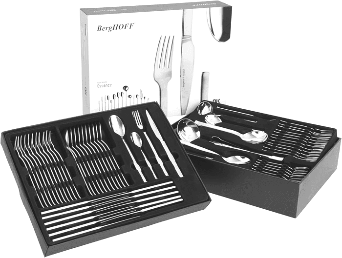 Berghoff 72-delige bestekset 1272605 Essence van RVS. Uitgebreid, stijlvol en duurzaam, perfect voor dagelijks gebruik en grote diners.