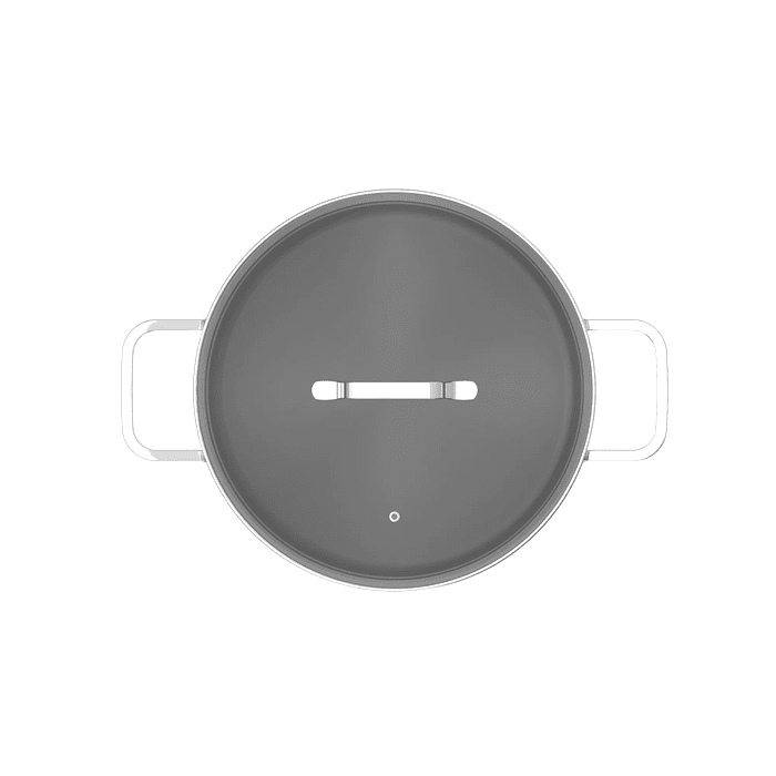 De pan wordt geleverd met een passend deksel, dat warmte en vocht vasthoudt tijdens het koken. Dit versnelt de bereidingstijd, behoudt de smaken en zorgt voor een gelijkmatige garing van soepen, stoofgerechten en sauzen.