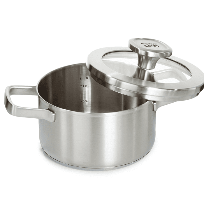 De Berghoff 3950491 is een compacte kookpot van 16 cm diameter, geleverd met passend deksel. Geschikt voor het koken van kleine tot middelgrote porties.