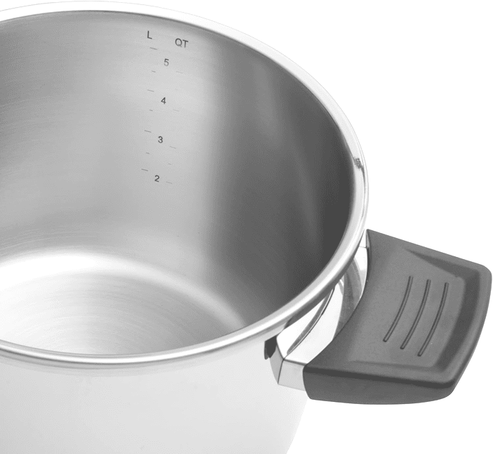 De Berghoff Vita snelkookpan beschikt over meerdere veiligheidsmechanismen, waaronder een drukregelaar en automatische vergrendeling van het deksel. Hierdoor kook je veilig en zonder zorgen, zelfs bij hoge temperaturen.